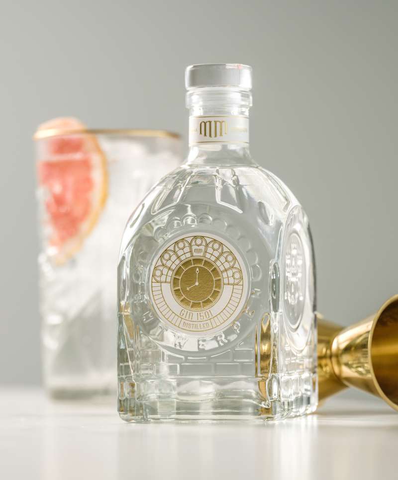 MM’s bottle’s design features the monumental details of the Central Station, rising above the water of ‘t Scheldt, and Antwerp’s traditional royal crest. The centerpiece of the bottle is the station clock, which we translated into the bottle’s label. The colors of each label were carefully chosen to evoke the distinct flavor profiles of each distillate.