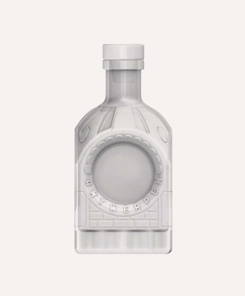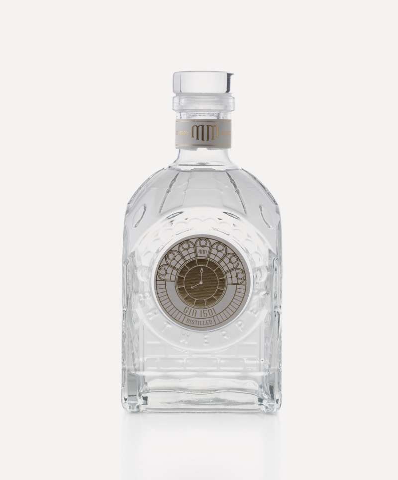 MM’s bottle’s design features the monumental details of the Central Station, rising above the water of ‘t Scheldt, and Antwerp’s traditional royal crest. The centerpiece of the bottle is the station clock, which we translated into the bottle’s label. The colors of each label were carefully chosen to evoke the distinct flavor profiles of each distillate.